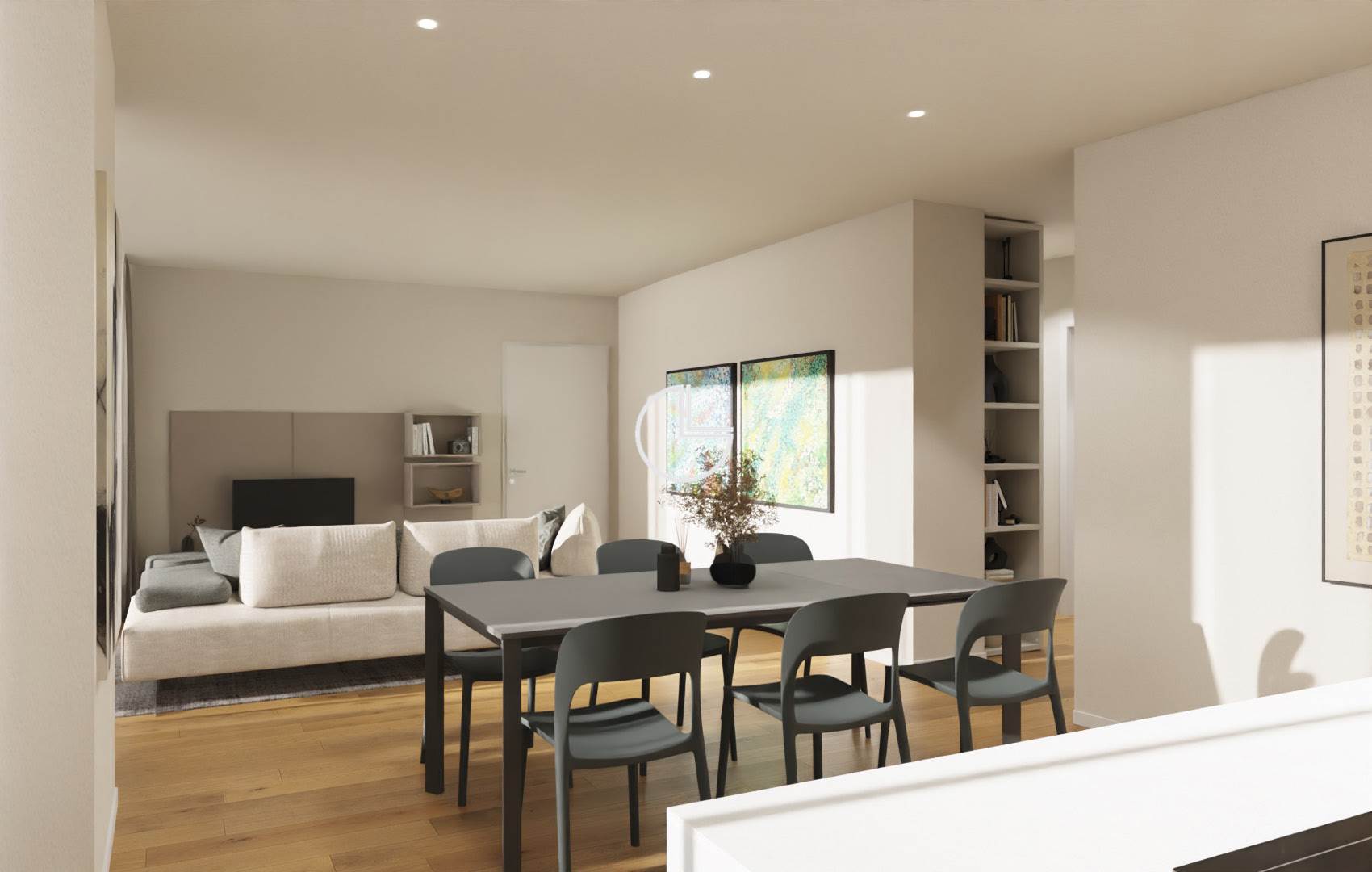 L’appartamento si distingue per una distribuzione degli spazi armoniosa e funzionale: